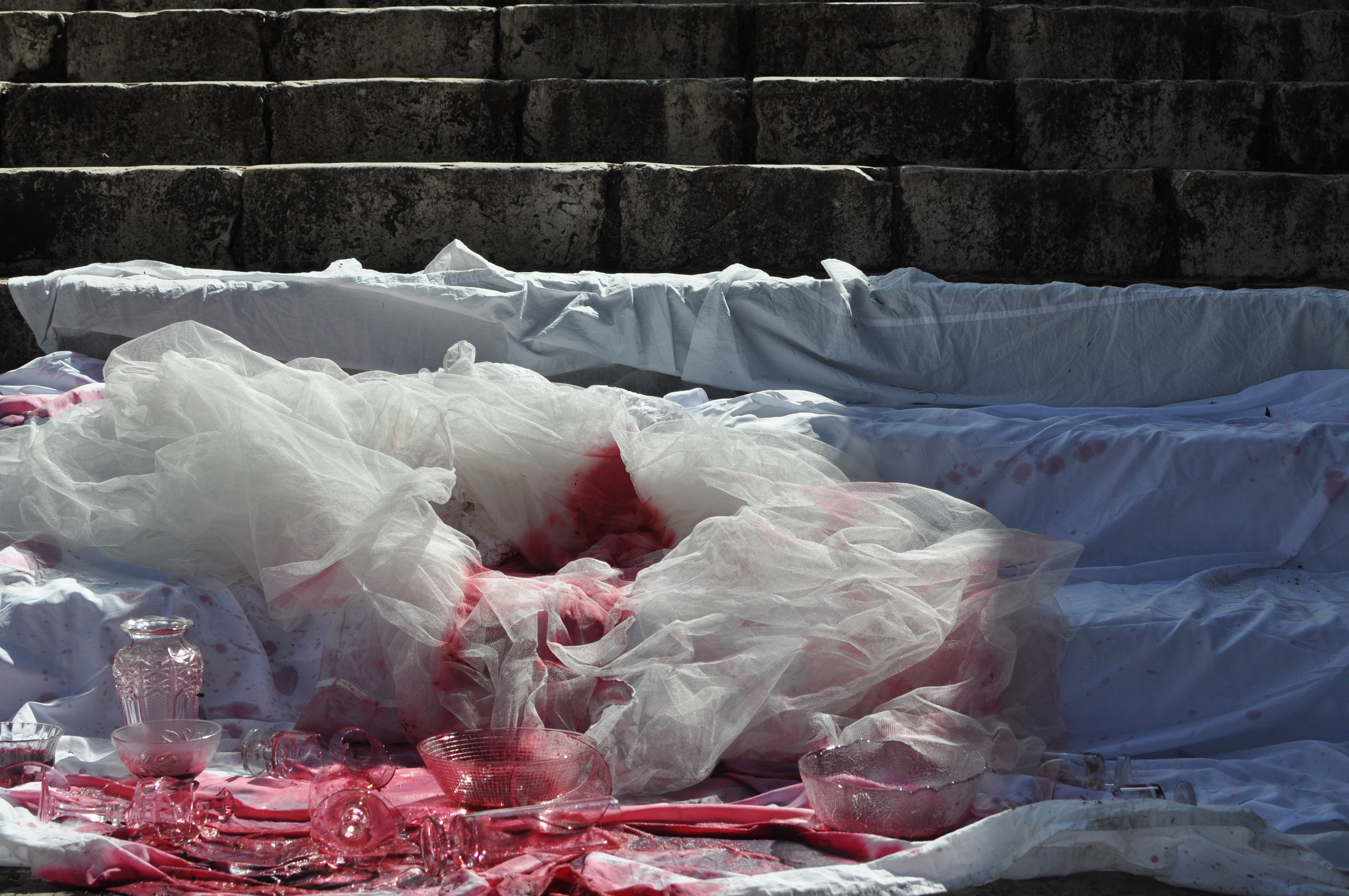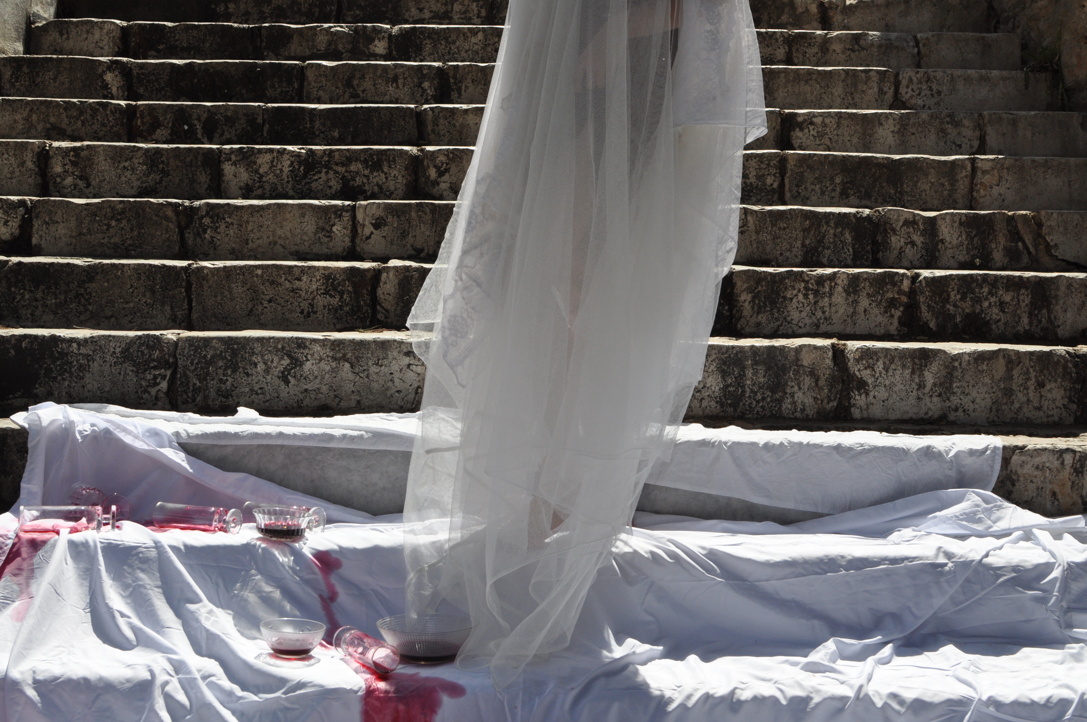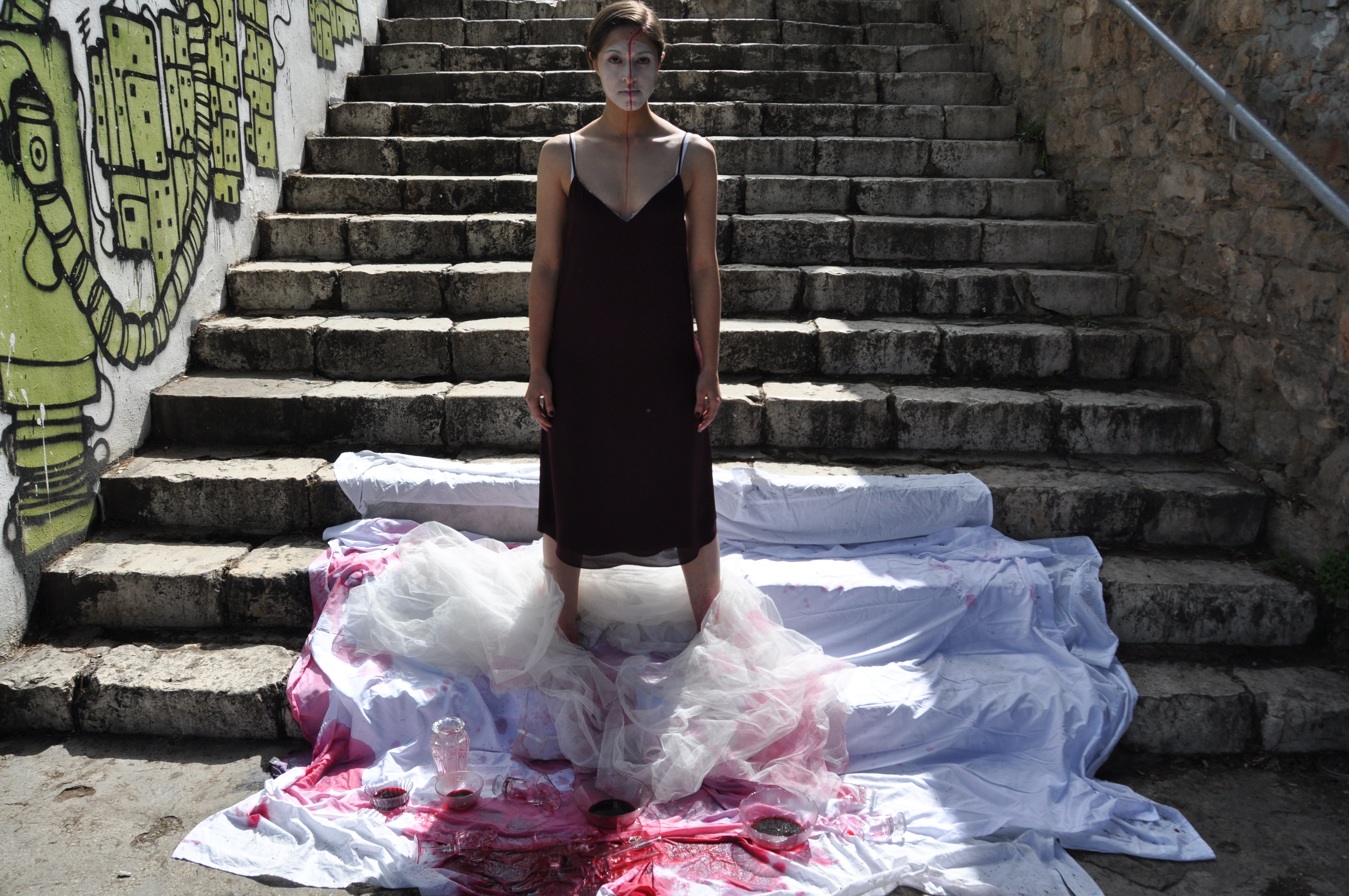 Disclaimer (تنصل), was shot in Amman, along the edge of East and West, the crevices of an intersection between modernity and tradition. The aim was to address the displaced and distorted body of the woman in the masculine hegemonic domain. In the images, the femme body takes central focus on public steps of the older East Amman. Here, the private ritual of bloodletting is made public.